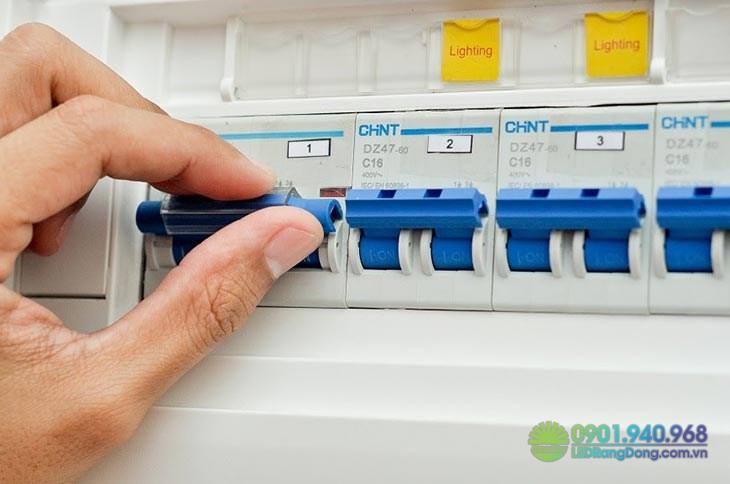Trước khi thao tác, hãy đảm bảo đã tắt nguồn điện tại aptomat hoặc cầu dao để tránh nguy cơ rò điện hoặc chập mạch.