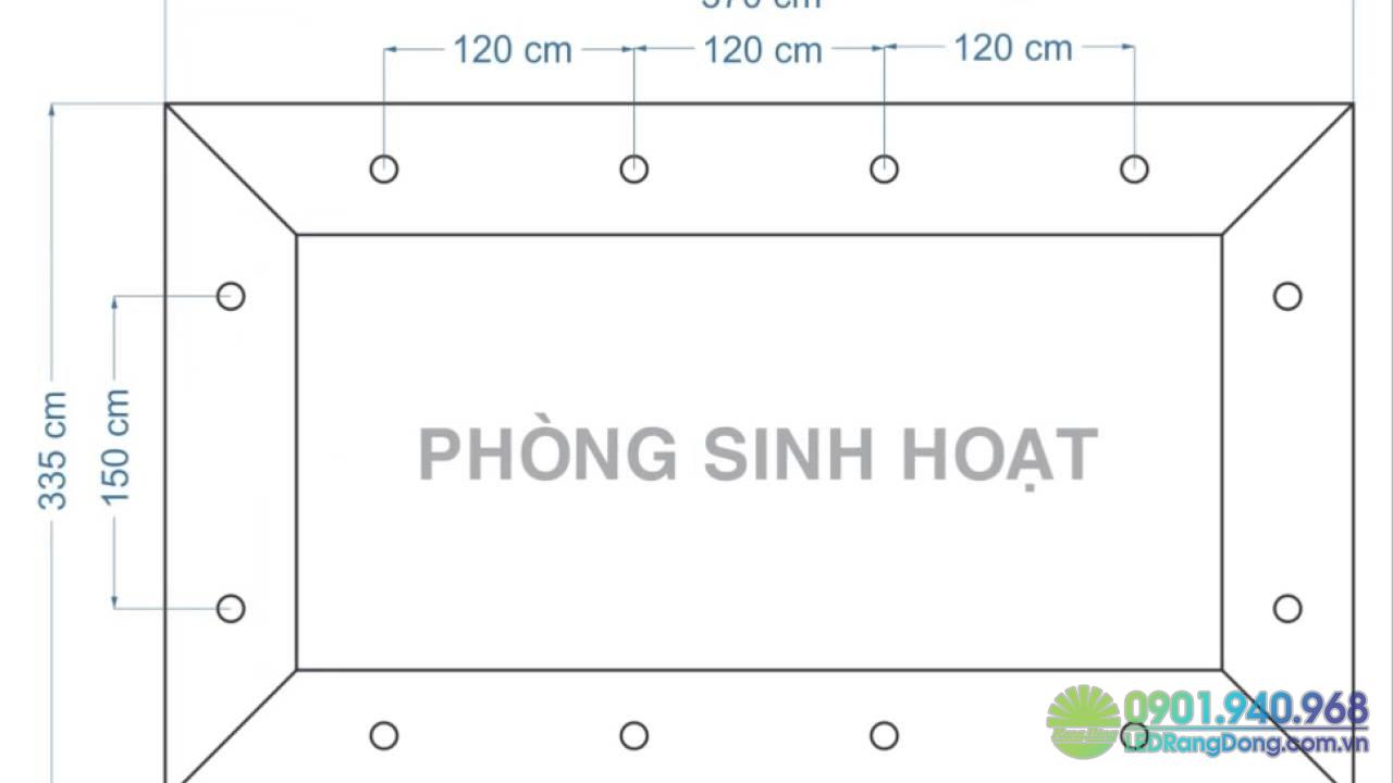 - Đèn từ 24W: Khoảng cách bố trí giữa các đèn là từ 2,5m đến 3m.