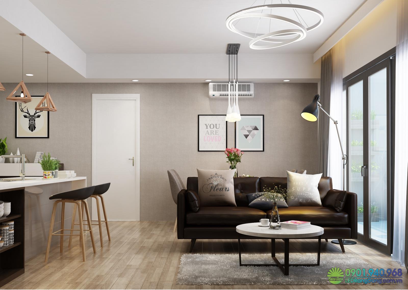 Khi chọn đèn trang trí phòng khách cho chung cư, ưu tiên các mẫu đèn có kiểu dáng gọn gàng, thiết kế tinh giản, phù hợp với diện tích thực tế để tạo cảm giác thông thoáng và dễ chịu hơn cho không gian sinh hoạt.