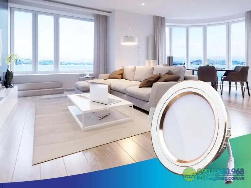 Ngoài ra, khi lắp đặt đèn âm trần phòng khách còn có nhiều màu ánh sáng (trắng, vàng, trung tính) và kiểu dáng đa dạng (tròn, vuông, viền vàng/bạc…) giúp dễ dàng phối hợp với nhiều phong cách nội thất.