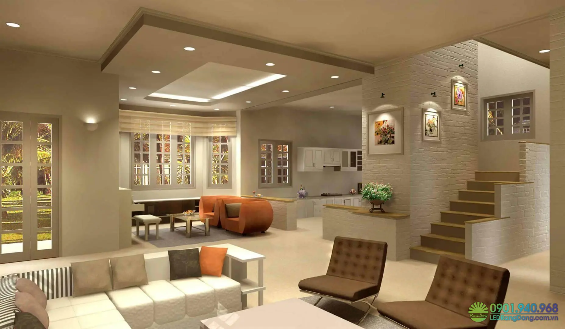 Cách bố trí đèn âm trần phòng khách Rạng Đông